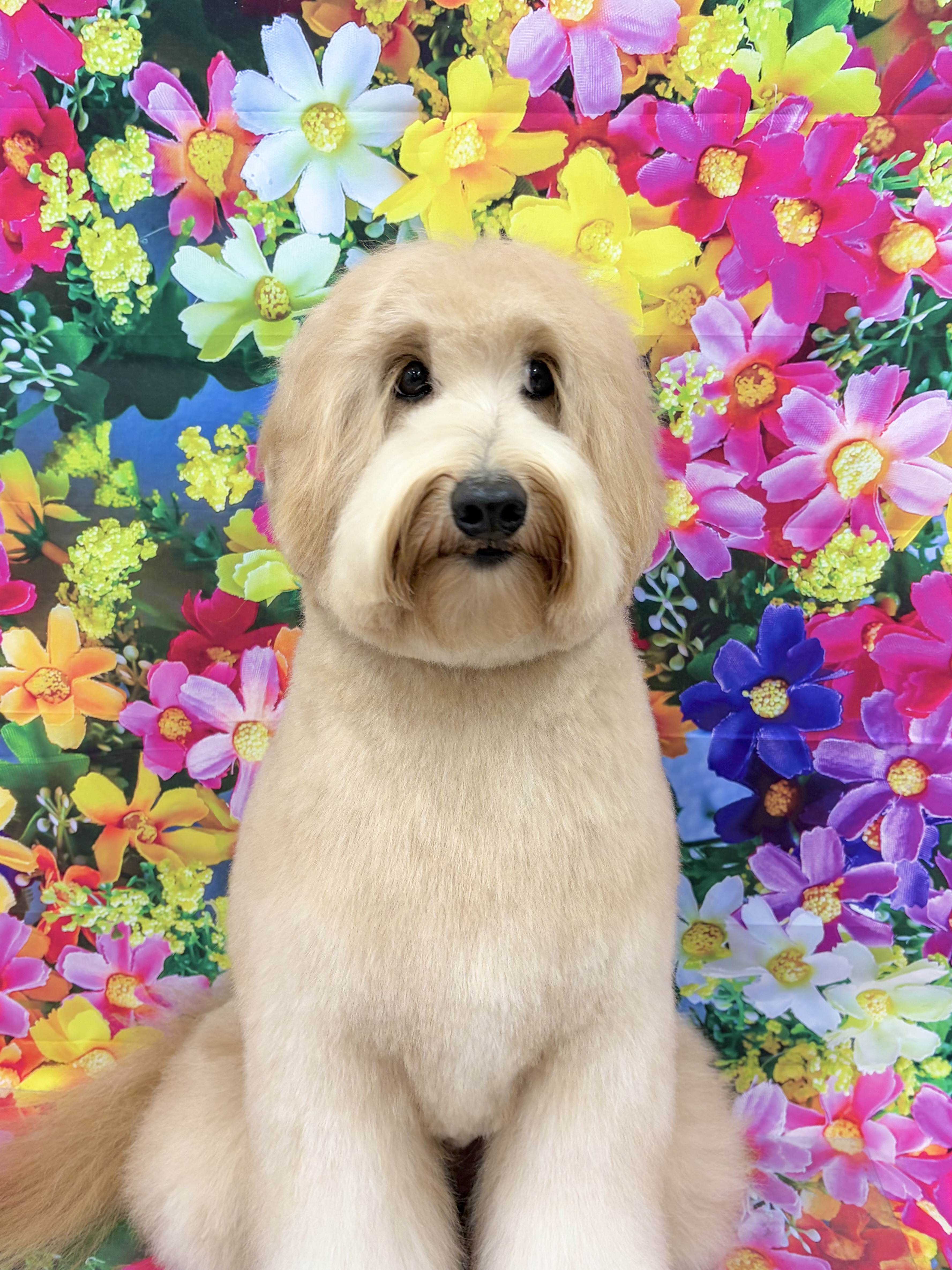 こんにちは!今日は、思わず笑顔になってしまう素敵な一枚をご紹介します。 見てください、このふわふわで愛らしい姿を!今回はメモにもあった通り、トリミングをして全体的にスッキリと整えてもらいました。カットしたての毛並みがとても綺麗で、ワンちゃん自身もどこか誇らしげな表情をしていますね。 撮影された正確な場所は不明ですが、背景の鮮やかなお花たちが、スッキリと可愛くなった姿をより一層引き立ててくれています。まるで秘密の花園に迷い込んだかのようですね。 日々のケアでワンちゃんがリフレッシュする姿を見ると、飼い主である私たちも幸せな気持ちになります。皆さんも、大切なペットとの素敵な休日を過ごしてくださいね。